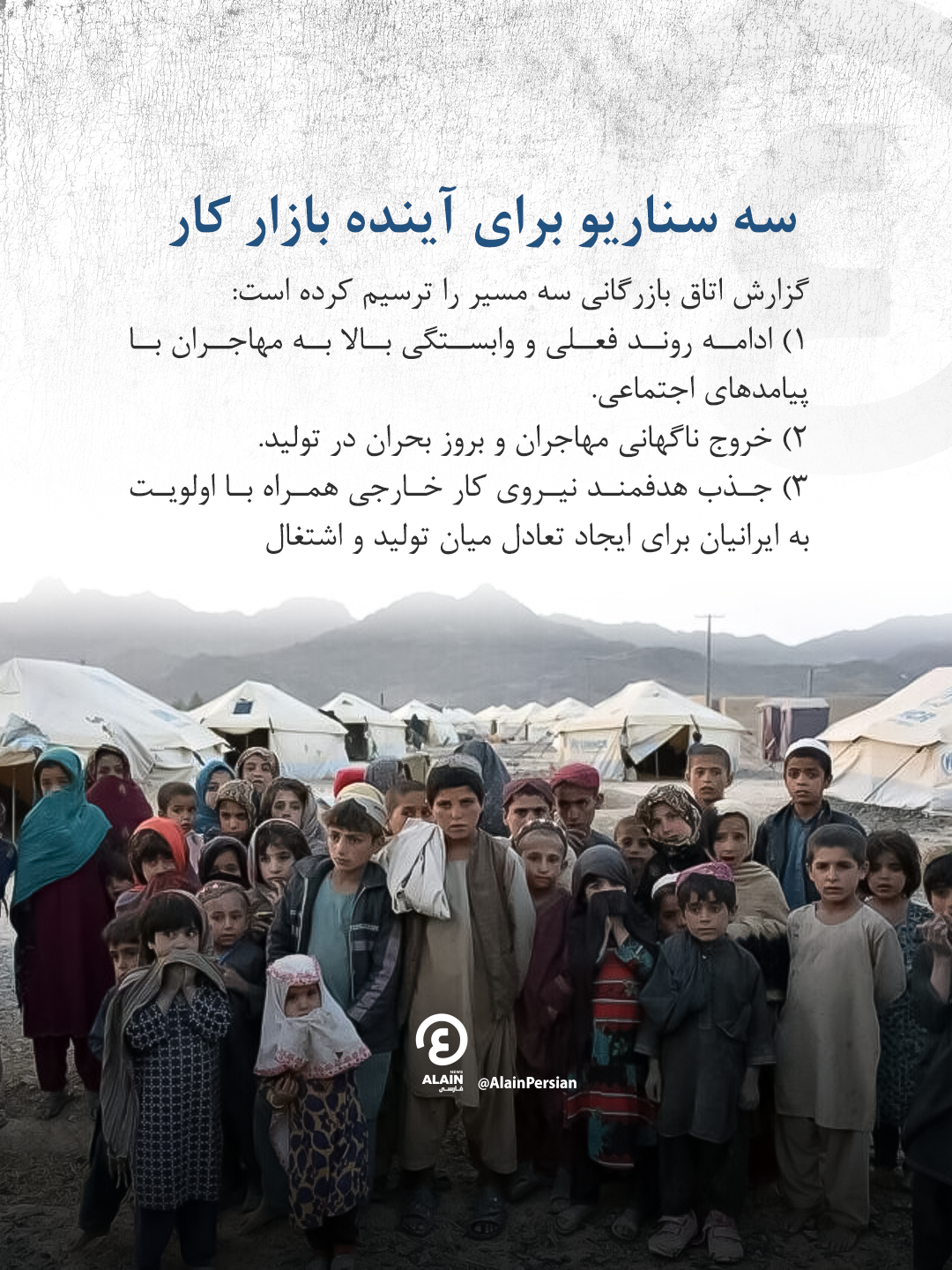 گزارش اتاق بازرگانی سه سناریو برای آینده بازار کار ایران ترسیم کرده است: ادامه روند فعلی با حفظ تولید کوتاهمدت اما افزایش تبعات اجتماعی، خروج ناگهانی مهاجران که موجب بحران در زنجیره تأمین خواهد شد، یا جذب هدفمند نیروی کار خارجی همراه با اولویتدهی به نیروی بومی که تعادل میان تولید و اشتغال ایرانیان را برقرار میکند.