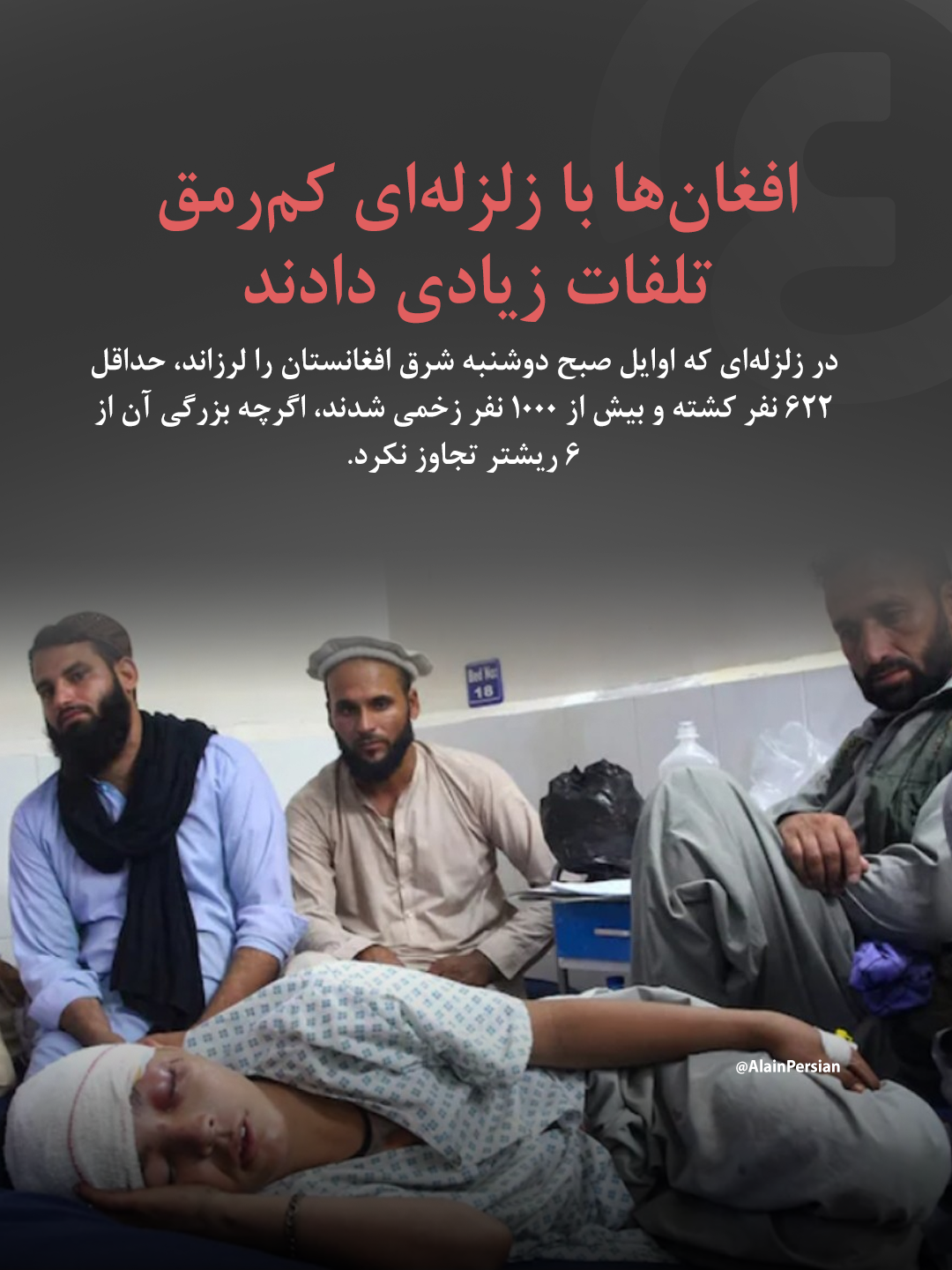 در زلزلهای که اوایل صبح دوشنبه شرق افغانستان را لرزاند، حداقل ۶۲۲ نفر کشته و بیش از ۱۰۰۰ نفر زخمی شدند، اگرچه بزرگی آن از ۶ ریشتر تجاوز نکرد.
