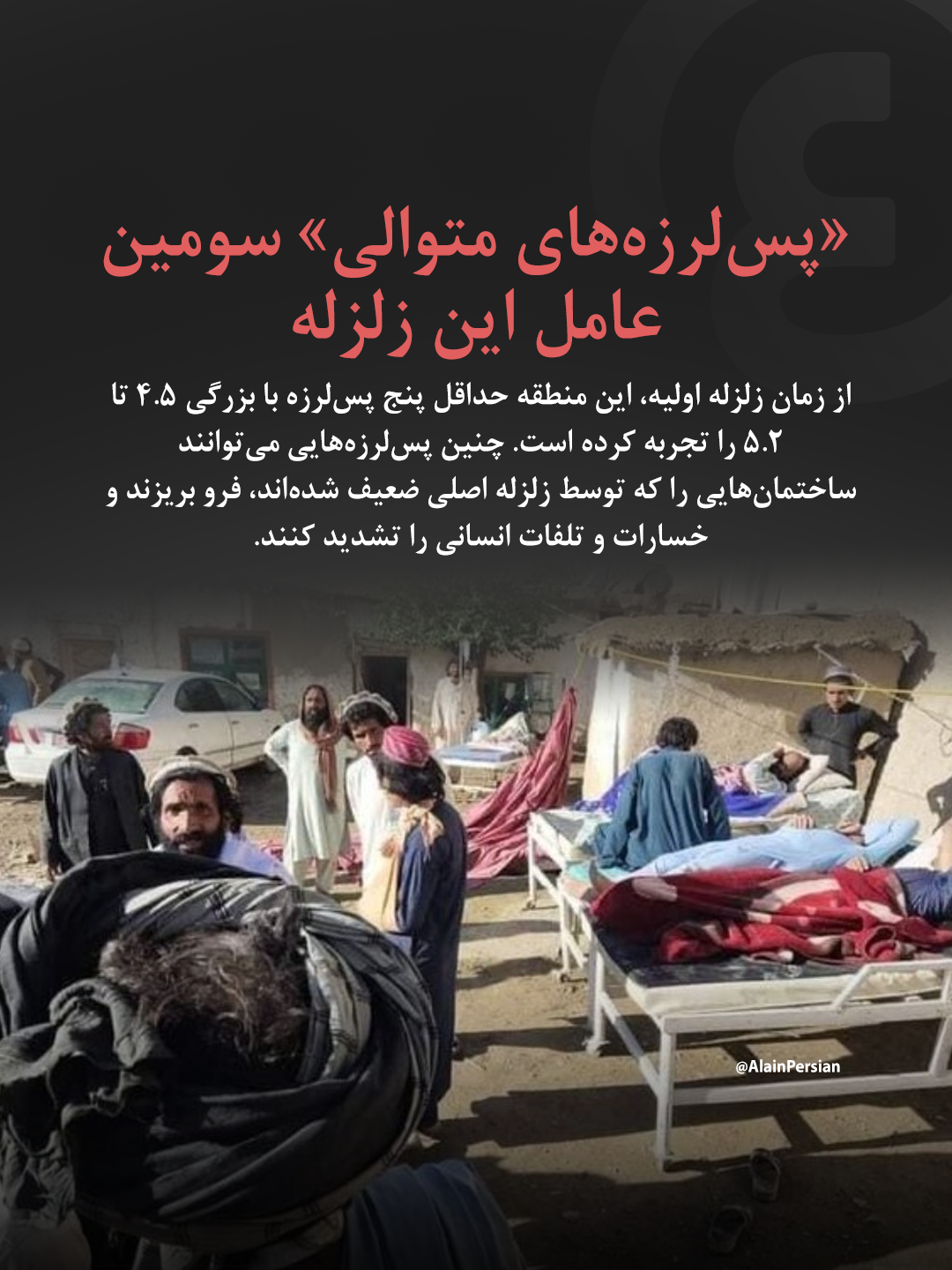 «پسلرزههای متوالی» سومین عاملی است که الهادی در تفسیر خود در مورد نیروی مخرب به آن اشاره میکند. از زمان زلزله اولیه، این منطقه حداقل پنج پسلرزه با بزرگی ۴.۵ تا ۵.۲ را تجربه کرده است. چنین پسلرزههایی میتوانند ساختمانهایی را که توسط زلزله اصلی ضعیف شدهاند، فرو بریزند و خسارات و تلفات انسانی را تشدید کنند.