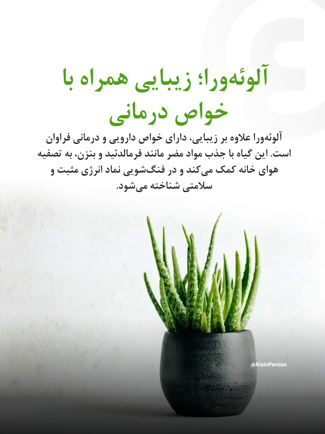 گیاه سوم آلوئهورا است که علاوه بر زیبایی، خواص درمانی و دارویی فراوانی دارد. آلوئهورا با جذب مواد مضر مانند فرمالدئید و بنزن، هوای خانه را پاکسازی میکند و از استرس و مشکلات تنفسی جلوگیری میکند. به همین دلیل در فنگشویی این گیاه به عنوان نماد انرژی مثبت و سلامت معرفی شده است.