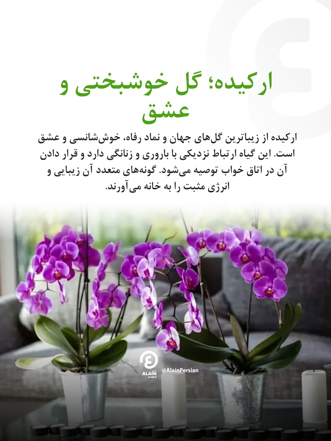 پنجمین گیاه ارکیده است که از زیباترین گلهای جهان محسوب میشود. این گیاه در فنگشویی به عنوان نماد خوشبختی، عشق و رفاه شناخته میشود. ارتباط ارکیده با باروری و زنانگی باعث شده قرار دادن آن در اتاق خواب توصیه شود. گونههای فراوان ارکیده ترکیبی از زیبایی و انرژی مثبت را برای خانه و محل کار به همراه میآورند.
