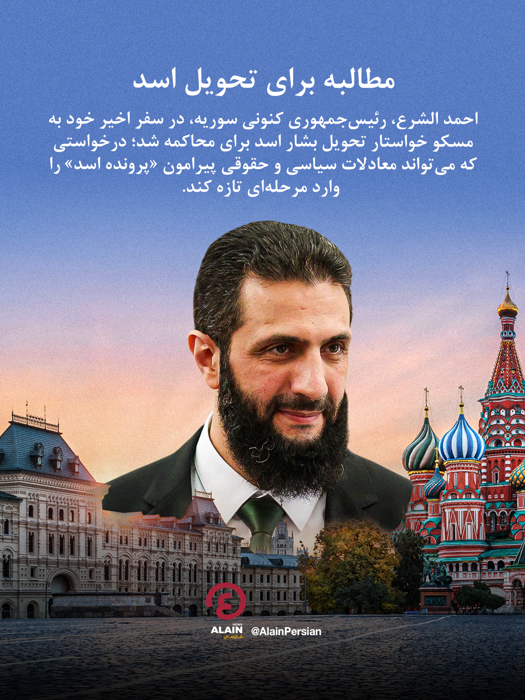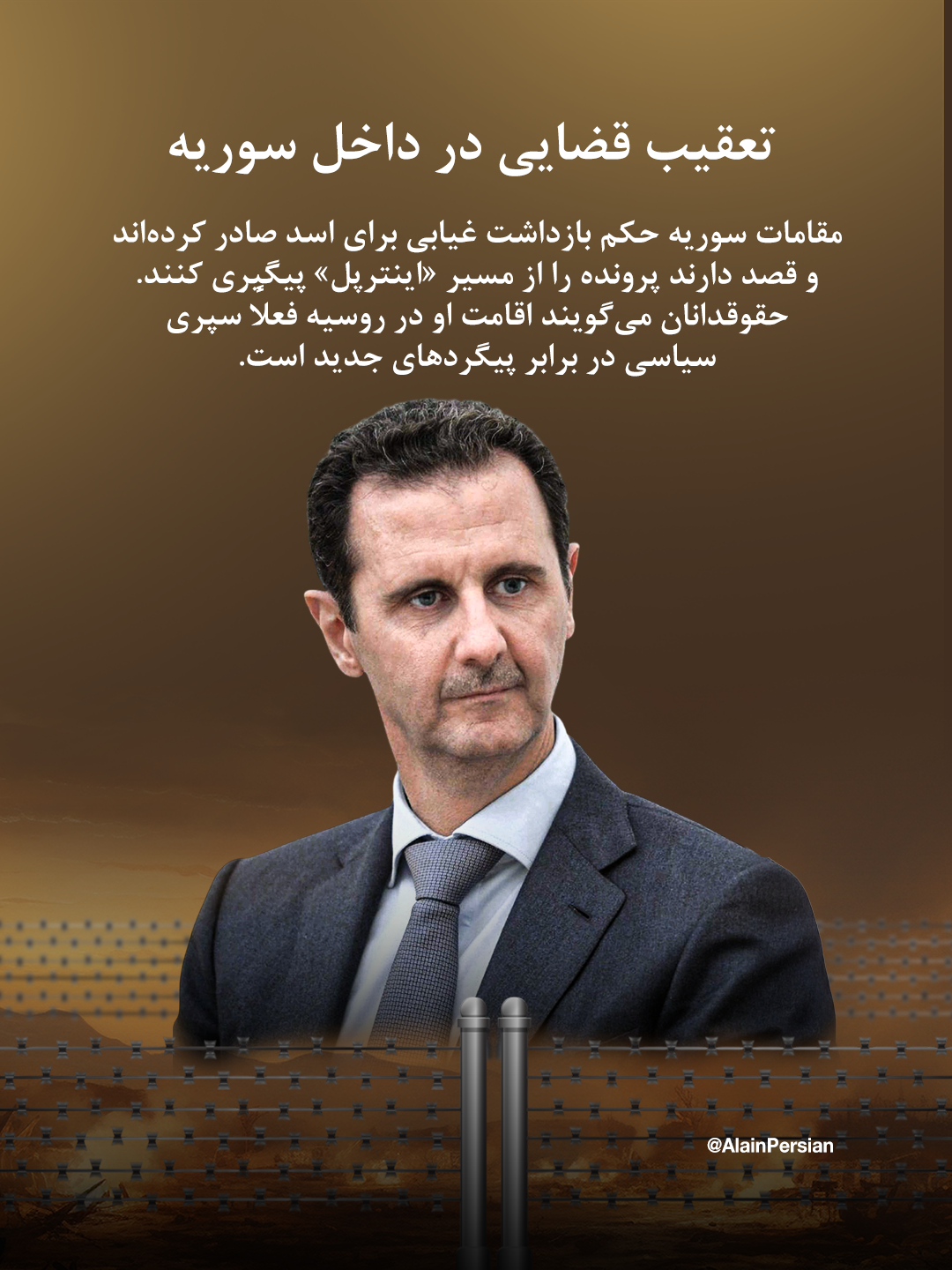 با این حال، کارشناسان حقوقی معتقدند اقامت اسد در روسیه برای او سپری سیاسی فراهم کرده که فعلاً مانع از تحرک پروندههای جدید میشود. با وجود این موانع، احمد الشرع، رئیسجمهوری کنونی سوریه، اخیراً در سفر خود به مسکو درخواست رسمی تحویل اسد برای محاکمه را مطرح کرده است؛ اقدامی که میتواند آینده «پرونده اسد» را وارد مرحلهای تازه و پیچیدهتر کند.