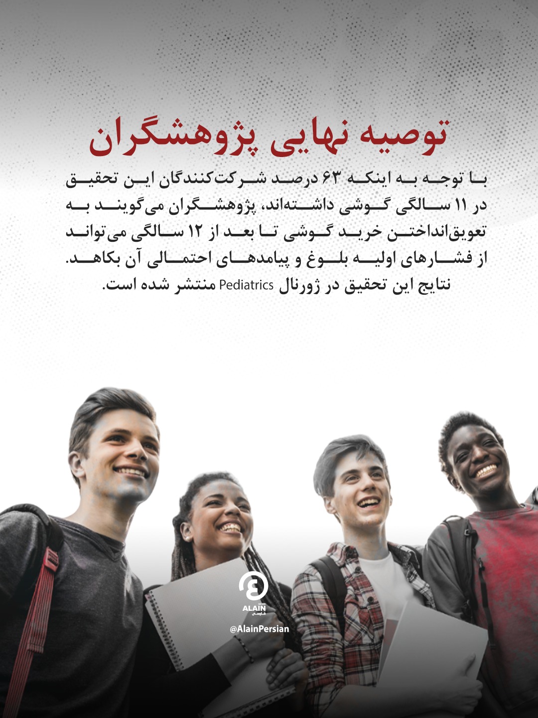 با توجه به اینکه ۶۳ درصد شرکتکنندگان این پژوهش در ۱۱ سالگی گوشی داشتهاند، نویسندگان مطالعه نتیجه گرفتهاند که عقبانداختن خرید گوشی تا پس از ۱۲ سالگی میتواند نقشی محافظتی در برابر مشکلات اولیه بلوغ ایفا کند. یافتههای این پژوهش در نشریه Pediatrics منتشر شده است.
