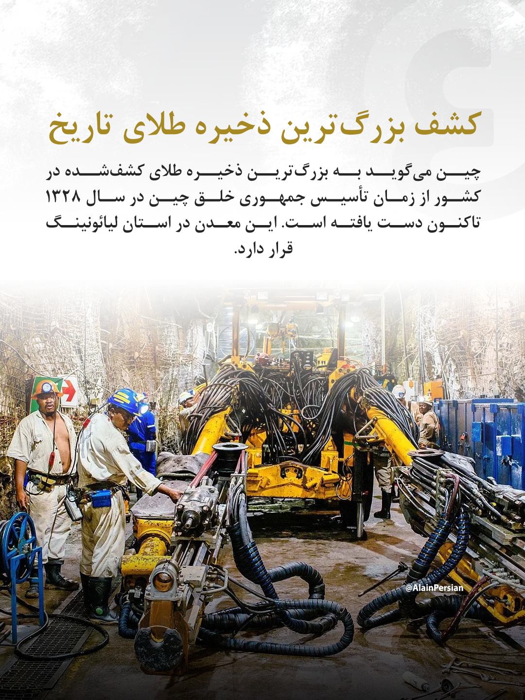 چین از کشف یکی از بزرگترین معادن طلای تاریخ خود خبر داده است؛ معدنی که بنا بر گزارشها بیش از یکهزار و ۴۴۴ تن طلا در خود جای داده و در استان لیائونینگ در شمال شرق این کشور قرار دارد.