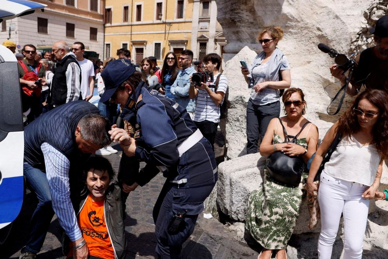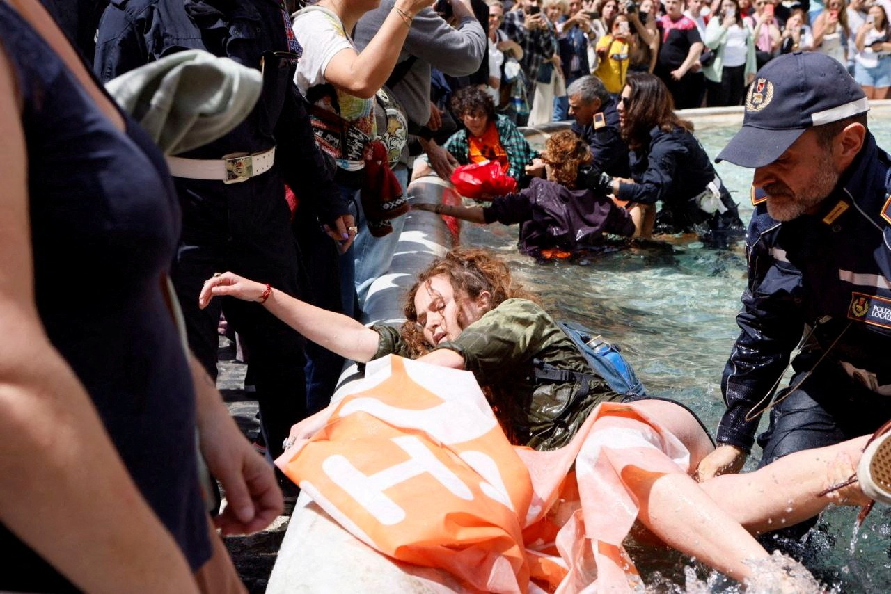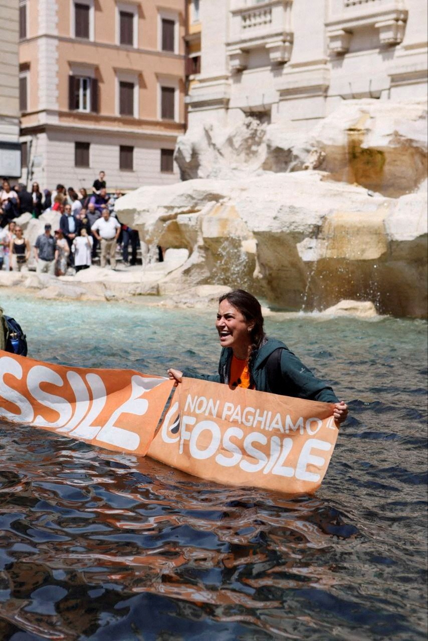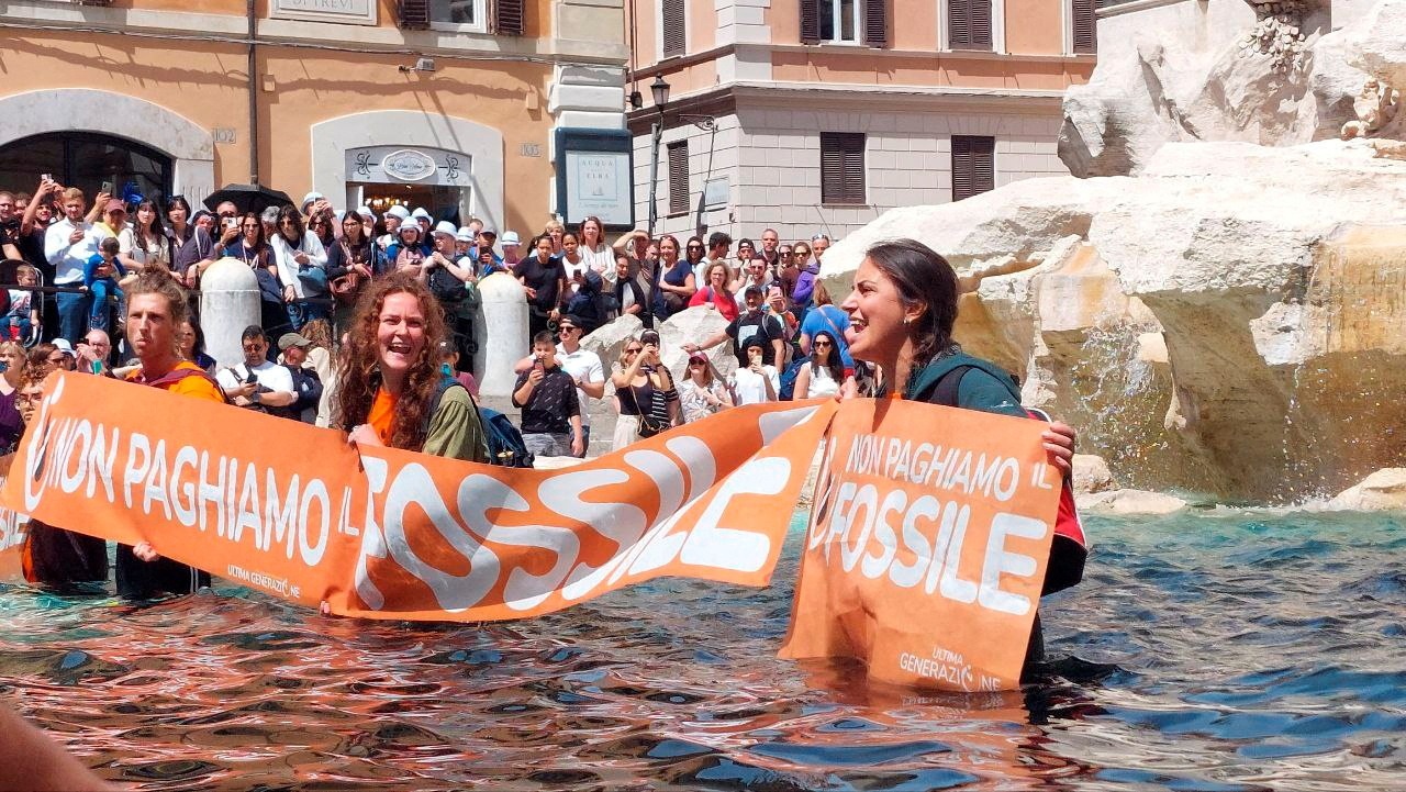 بر اساس گزارش خبرگزاری «رویترز»، معترضان از گروه «نسل آخر»، روز یکشنبه (۳۱ اردیبهشت) به فواره تروی در رم رفتند و زغال رقیق شده را در آب ریختند تا آن را سیاه کنند.