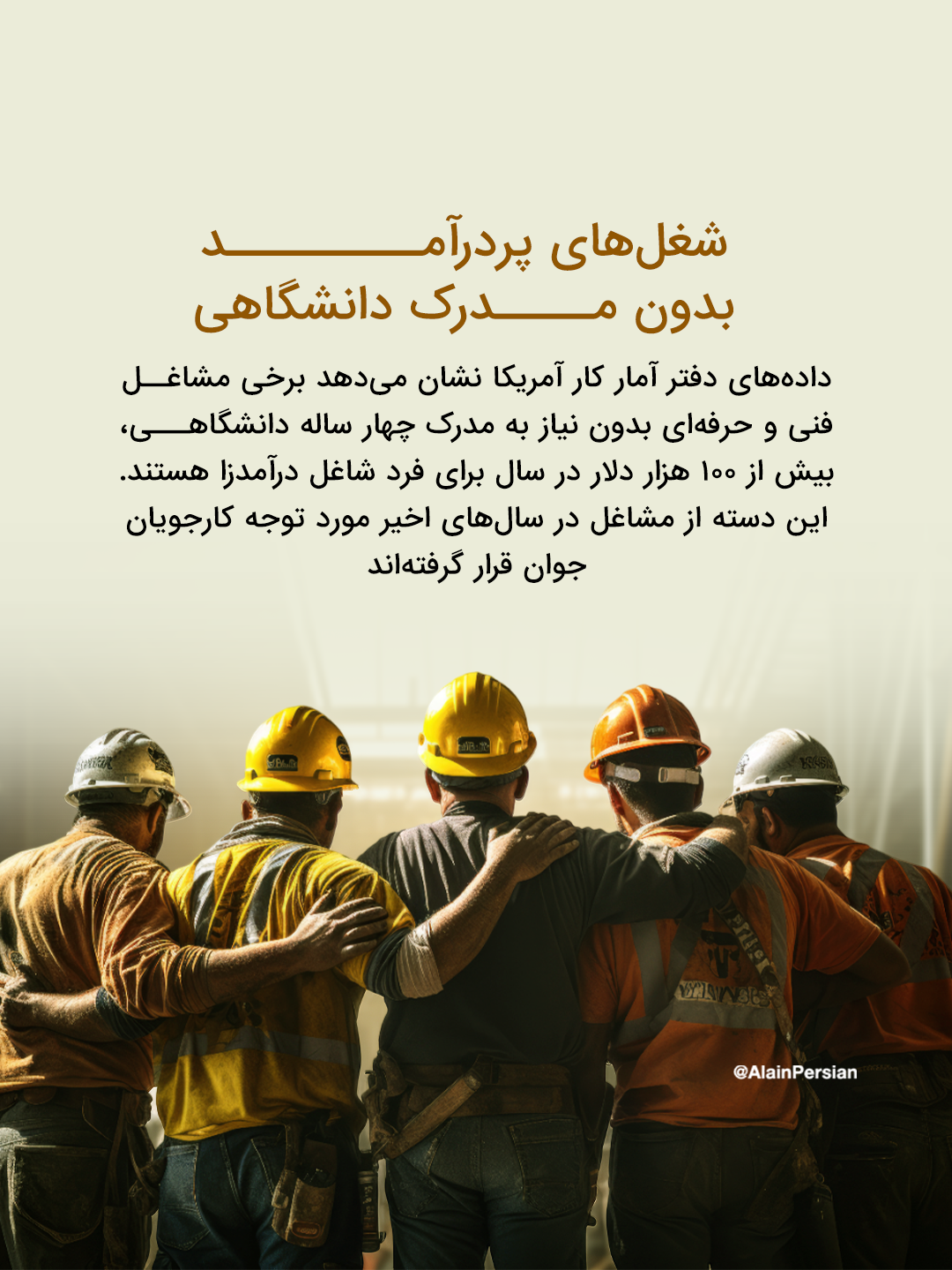 دادههای جدید دفتر آمار کار آمریکا نشان میدهد که شماری از مشاغل فنی و حرفهای، حتی بدون مدرک دانشگاهی، در سالهای اخیر به حقوقهای بیش از ۱۰۰ هزار دلار در سال رسیدهاند.