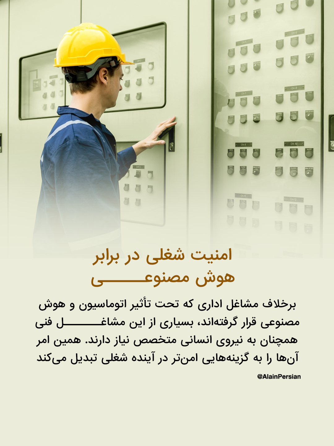 این مشاغل معمولاً بهجای تحصیل دانشگاهی، به آموزشهای حرفهای، کارآموزی و مهارتهای تجربی وابستهاند. بهویژه در شرایط فعلی که بسیاری از مشاغل اداری و خدماتی با تهدید جایگزینی توسط هوش مصنوعی روبهرو هستند، این مشاغل فنی بهدلیل ماهیت عملی و حضوریشان، از امنیت شغلی بیشتری برخوردارند.