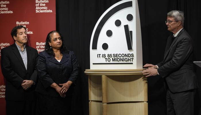نشریه دانشمندان اتمی اعلام کرد که «ساعت آخرالزمان» برای نخستین بار در تاریخ خود در ۸۵ ثانیه قبل از نیمهشب قرار گرفته است.