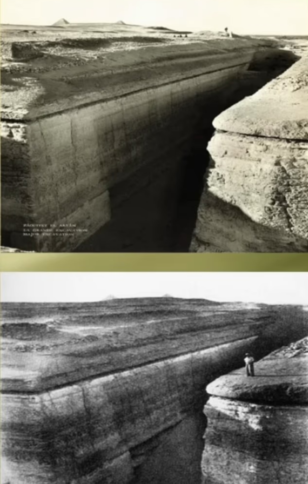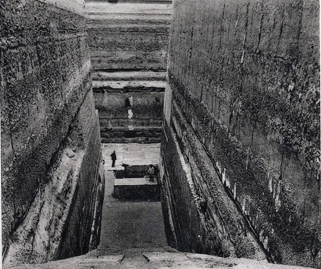 ماجرای این مکان به اوایل دهه ۱۹۰۰ بازمیگردد؛ زمانی که باستانشناس ایتالیایی، الساندرو بارسانتی، نخستین کاوشها را در آن انجام داد و حفرهای عظیم به شکل حرف T در دل سنگ آهک صلب کشف کرد. این گودال نزدیک به ۱۰۰ فوت عمق داشت و دیوارههای آن با بلوکهای بزرگ گرانیتی پوشانده شده بود.