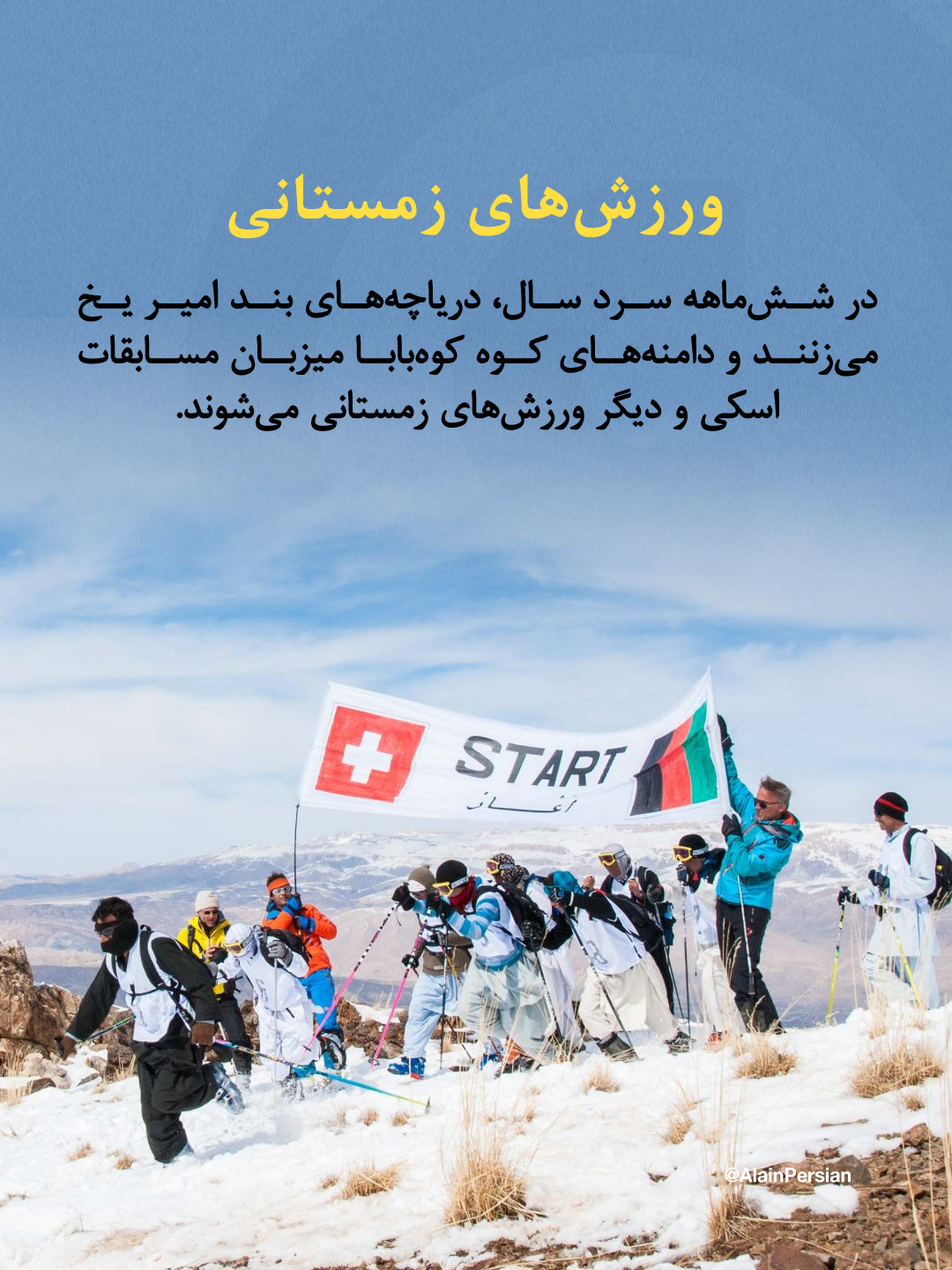 ۴۰ کیلومتر دورتر، شش دریاچه طبیعی بند امیر با رنگ آبی لاجوردی قرار دارند که امکان شنا، قایقسواری و غواصی در آنها فراهم است. در اطراف این دریاچهها شالیهها و مناطق کمپینگ ایجاد شده و فضاهای بازی کودکان نیز در دسترس است.