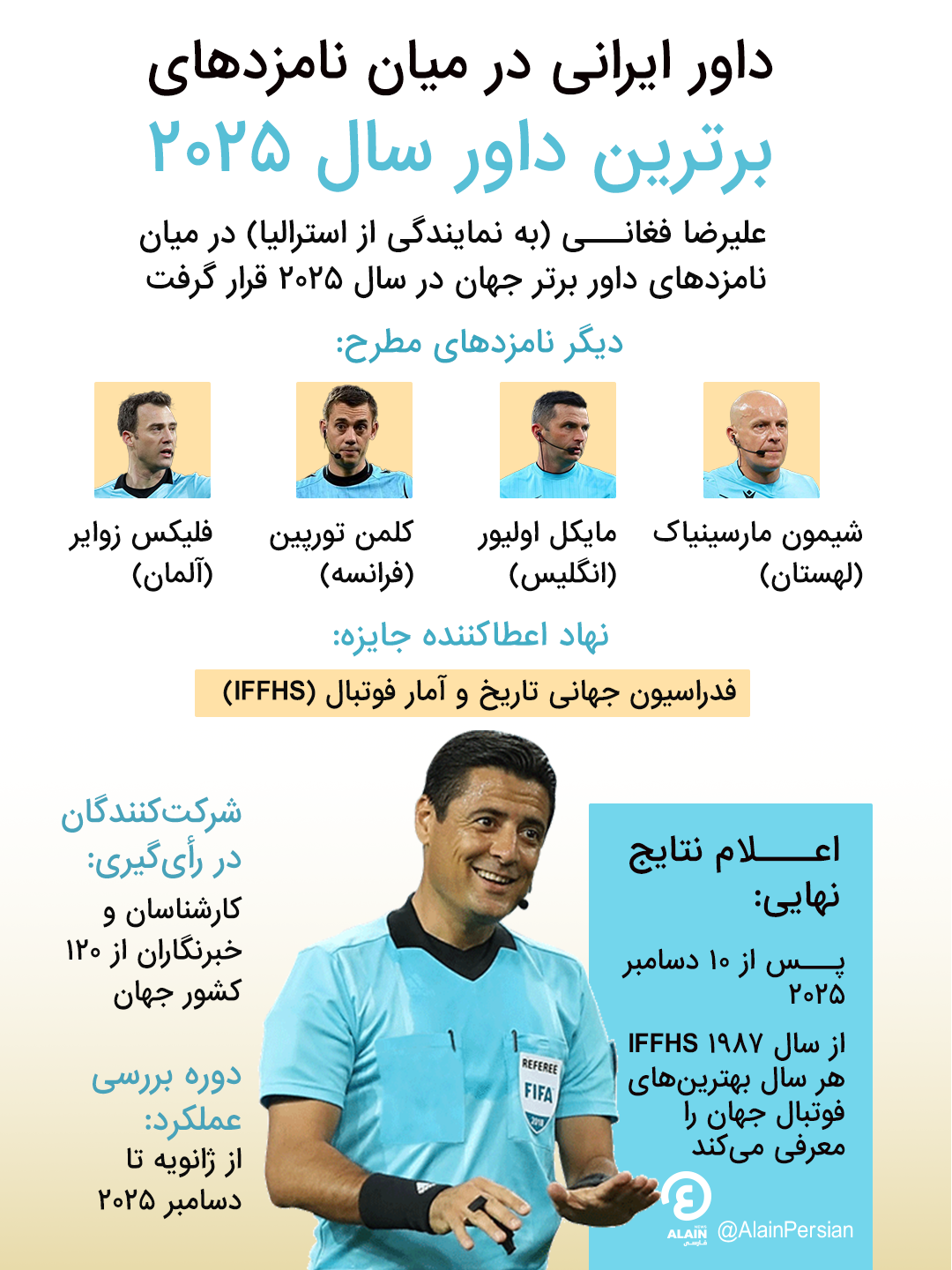 علیرضا فغانی در میان نامزدهای داور برتر جهان در سال ۲۰۲۵