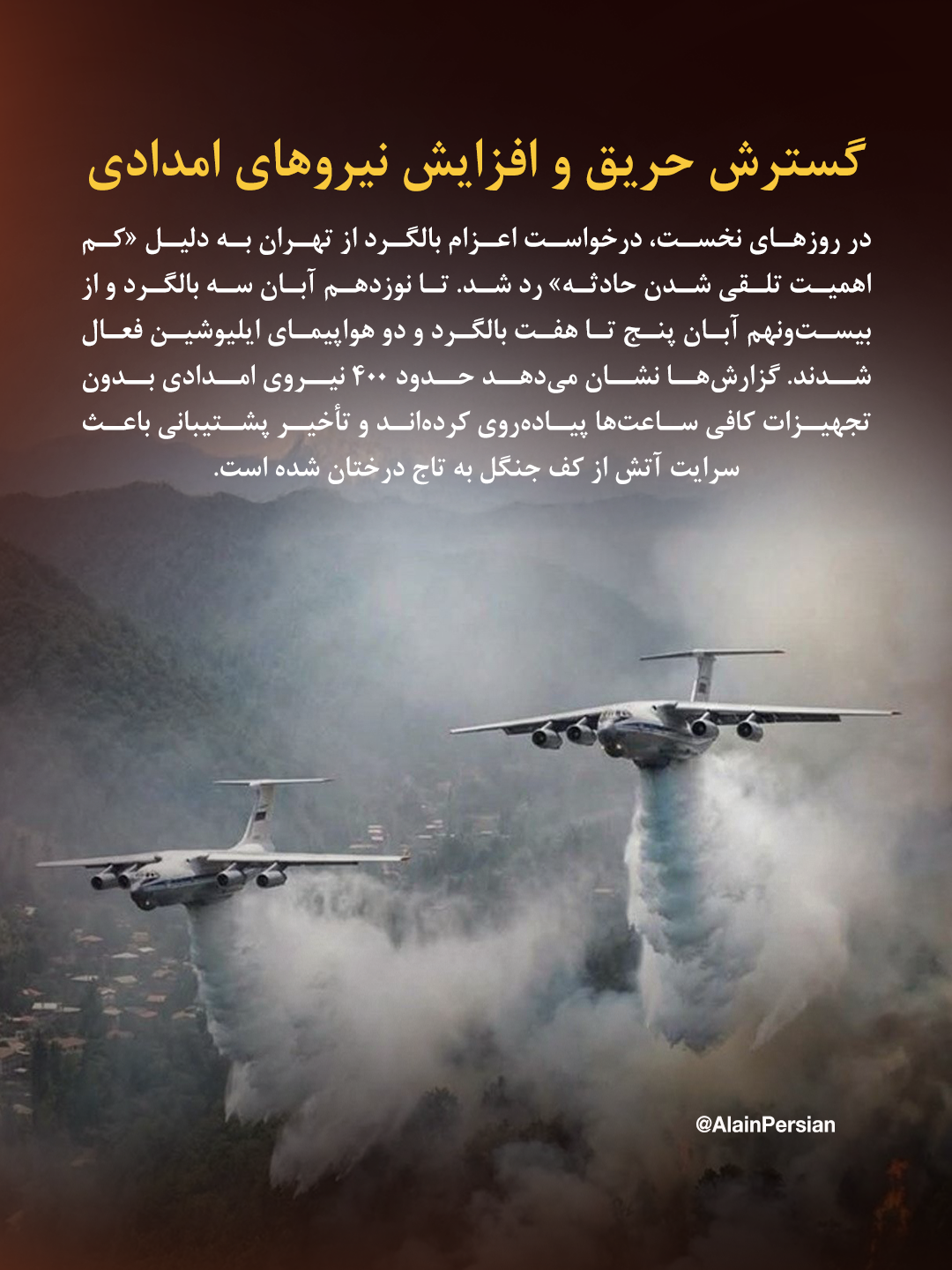 آتشسوزی گسترده جنگلهای هیرکانی ایران وارد سومین هفته شد