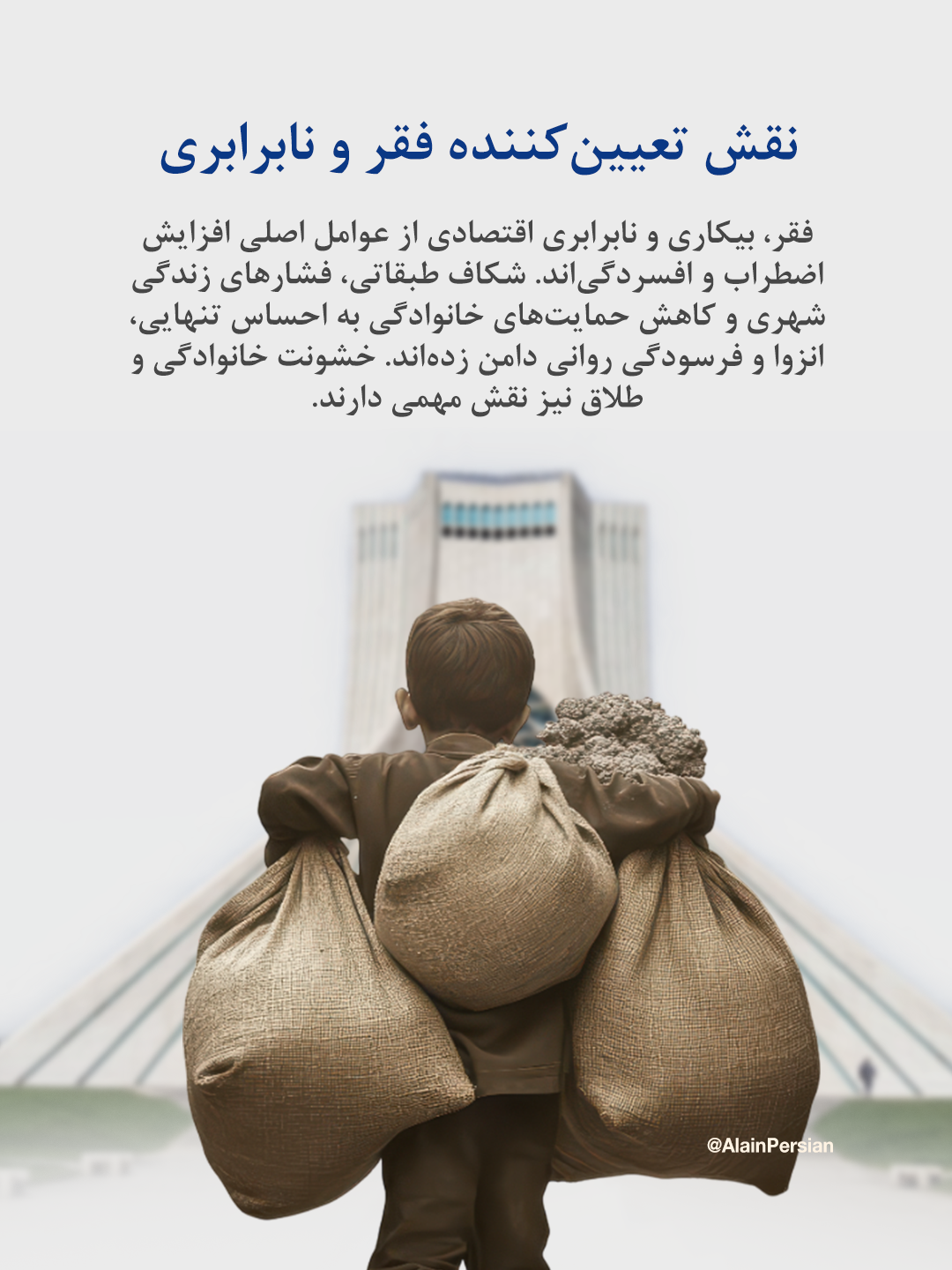 شریفی یزدی یکی از عوامل تعیینکننده در افزایش مشکلات روانی را فقر و نابرابری اقتصادی دانسته و افزود: «فاصله طبقاتی، بیکاری و فشارهای ناشی از زندگی شهری احساس اضطراب و استرس را تشدید کردهاند. کاهش حمایتهای خانوادگی و افزایش خشونت خانگی نیز این وضعیت را وخیمتر کرده است.»