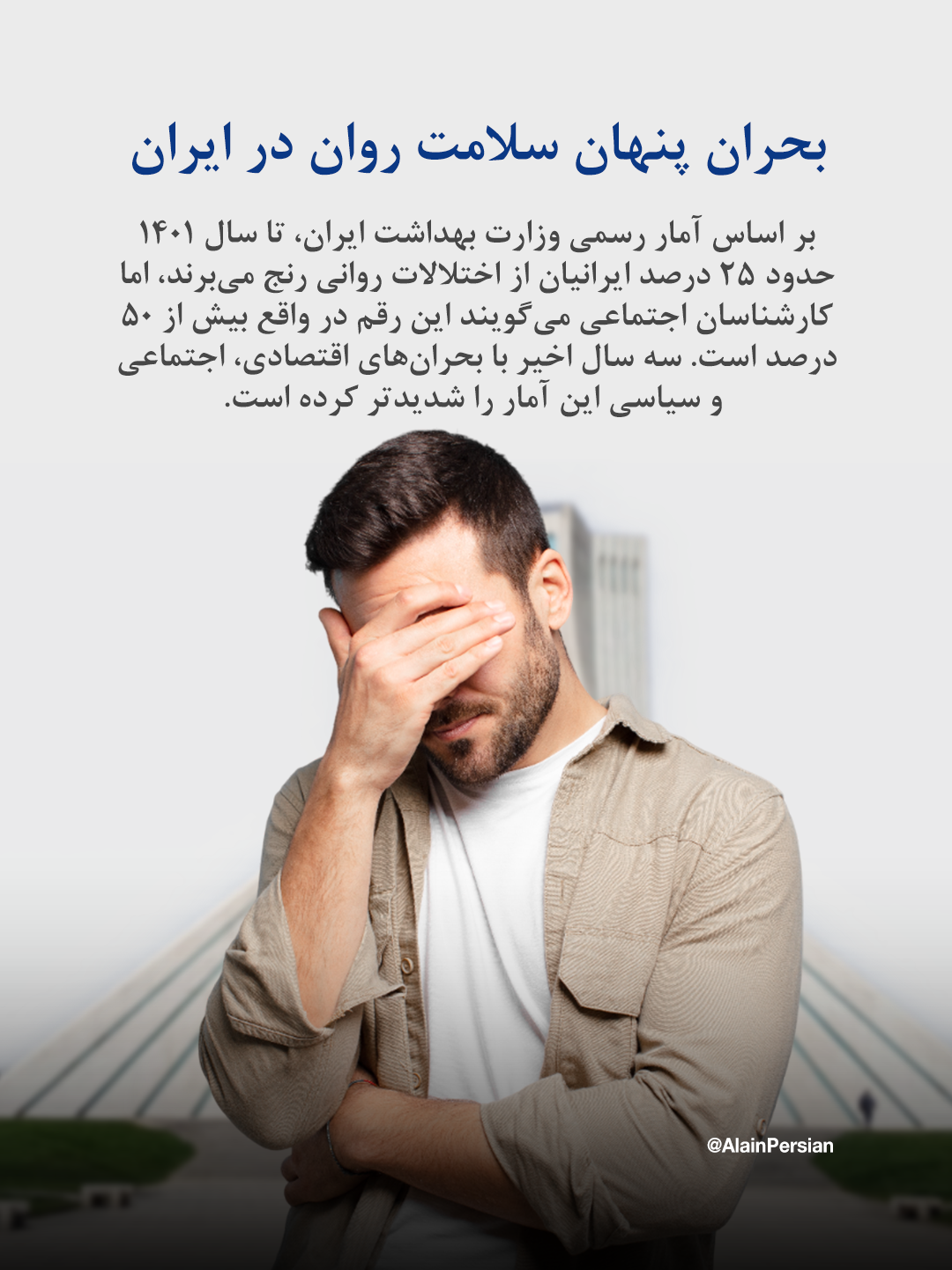 در حالی که وزارت بهداشت ایران میزان شیوع اختلالات روانی در کشور را حدود ۲۵ درصد اعلام کرده، روانشناسان اجتماعی میگویند آمار واقعی بسیار بالاتر است و احتمال میرود بیش از نیمی از جمعیت کشور به نوعی از مشکلات روانی مبتلا باشند.