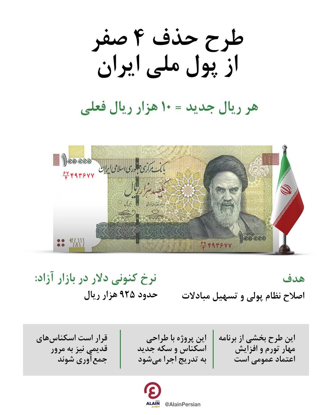 محمدرضا فرزین، رئیس کل بانک مرکزی ایران، در اردیبهشتماه سال جاری حذف ۴ صفر از پول ملی را یکی از اولویتهای اصلی این نهاد اعلام کرده بود. او گفته بود که این طرح بخشی از برنامه اصلاح نظام پولی کشور است که به طور جدی در حال پیگیری است. به گفته فرزین، هدف از این اقدام علاوه بر اصلاح ساختار پولی، تسهیل مبادلات و افزایش کارایی نظام پرداخت در کشور است.