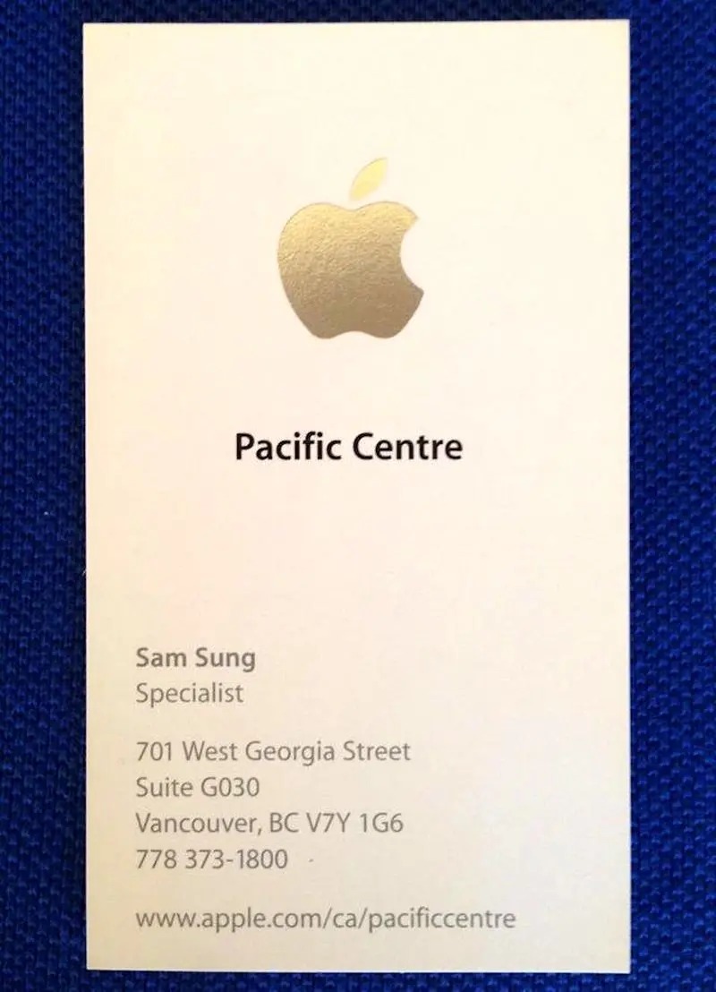 شهرت غیرمنتظره سام سونگ در سال ۲۰۱۲ آغاز شد، زمانی که یکی از مشتریان فروشگاه اپل در ونکوور کارت ویزیت او را در اینترنت منتشر کرد. روی کارت نوشته شده بود: Sam Sung – Apple Specialist. همین ترکیب نام، که همزمان تداعیکننده دو رقیب بزرگ دنیای فناوری یعنی اپل و سامسونگ بود، کافی بود تا تصویر کارت در مدت کوتاهی در شبکههای اجتماعی پخش و به یکی از شوخیهای معروف آن سال تبدیل شود.