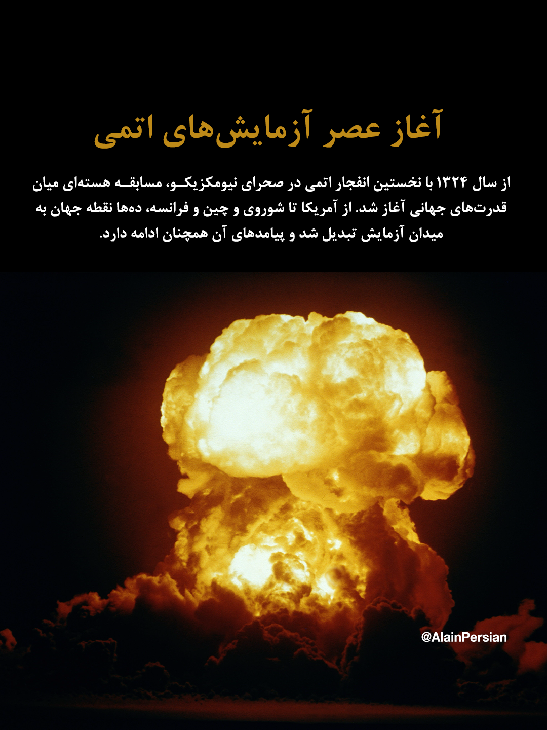 از نخستین انفجار اتمی در صحرای نیومکزیکو در سال ۱۳۲۴، زمین هرگز از پیامدهای مسابقه تسلیحاتی قدرتهای بزرگ رها نشده است؛ مسابقهای که در نقاط مختلف جهان صدها محل آلوده بر جای گذاشته و هزاران انسان را بدون آنکه پرسشی از آنان شود، در معرض مرگ خاموش قرار داد