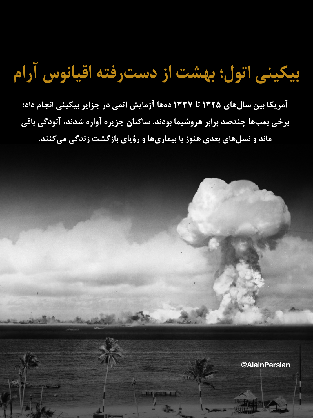 استرالیا، اقیانوس آرام، شمال آفریقا و جنوب آسیا نیز از این تاریخ بینصیب نماندند. جزایر بیكینی در اقیانوس آرام میان سالهای ۱۳۲۵ تا ۱۳۳۷ شاهد انفجار دهها بمب آمریکایی بود و ساکنان بومی ناچار به ترک خانههای خود شدند.