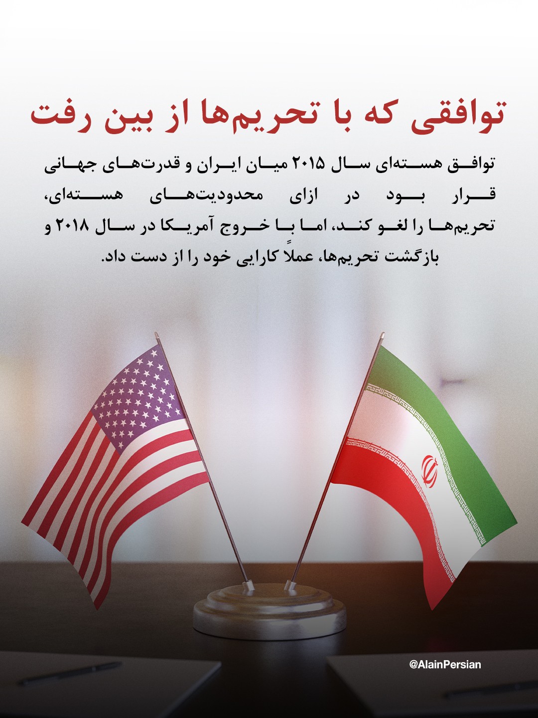 توافق هستهای میان ایران و قدرتهای جهانی شامل ایالات متحده، بریتانیا، فرانسه، روسیه، چین و آلمان در سال ۲۰۱۵ میلادی با هدف اطمینان از ماهیت صلحآمیز برنامه هستهای ایران در ازای لغو تحریمهای اقتصادی برقرار شد. اما خروج واشینگتن از توافق در سال ۲۰۱۸ به تصمیم دونالد ترامپ و بازگرداندن تحریمها، موجب کاهش تدریجی تعهدات ایران و در نهایت پایان رسمی محدودیتها شد.