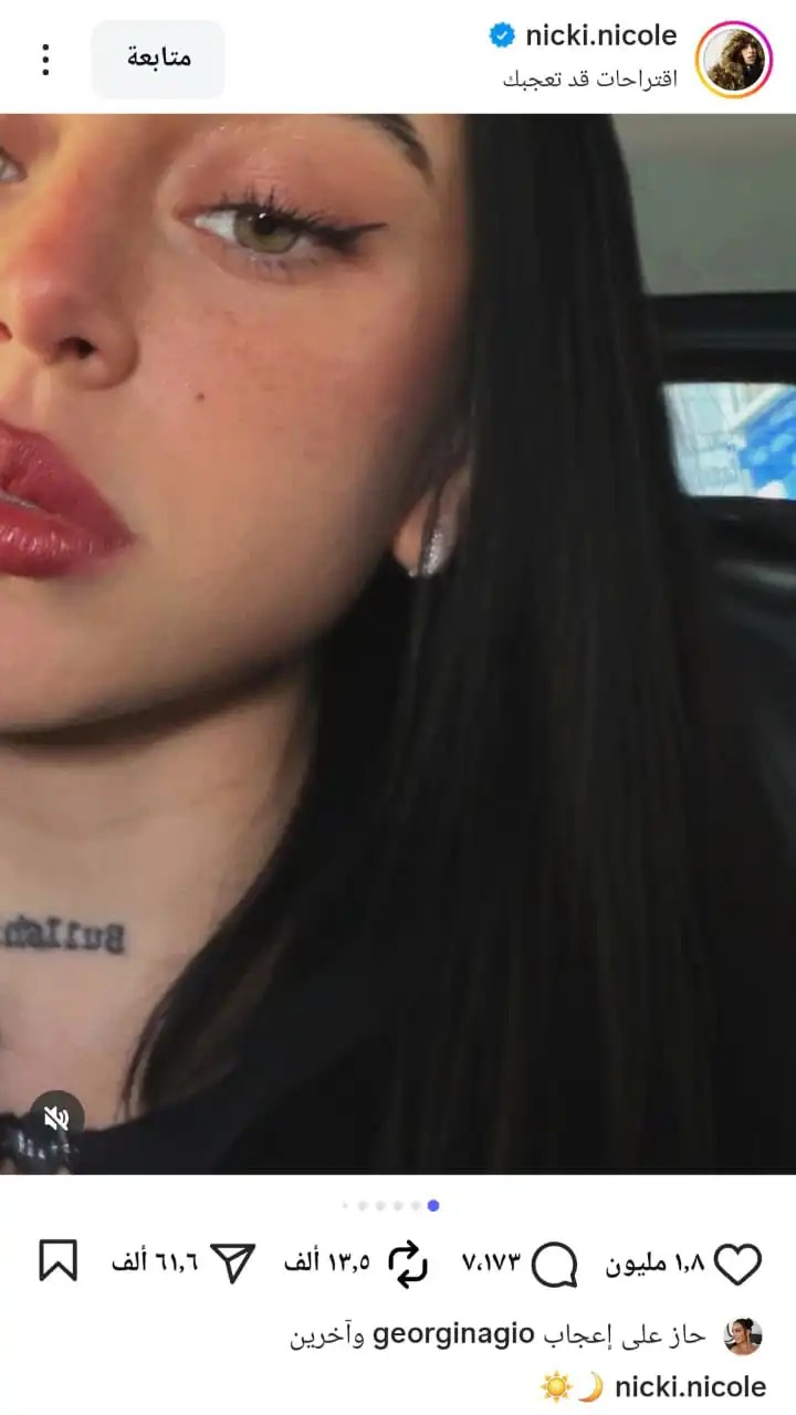 نیکی نیکول در روزهای گذشته تصویری از خود را در صفحه شخصیاش منتشر کرد که در مدت کوتاهی هزاران لایک و نظر به همراه داشت. در میان کاربران مشهوری که به این عکس واکنش نشان دادند، نام جورجینا رودریگز نیز دیده میشود. این اقدام او باعث شد موجی از گمانهزنیها در میان دنبالکنندگان فوتبال و دنیای سرگرمی شکل بگیرد.
