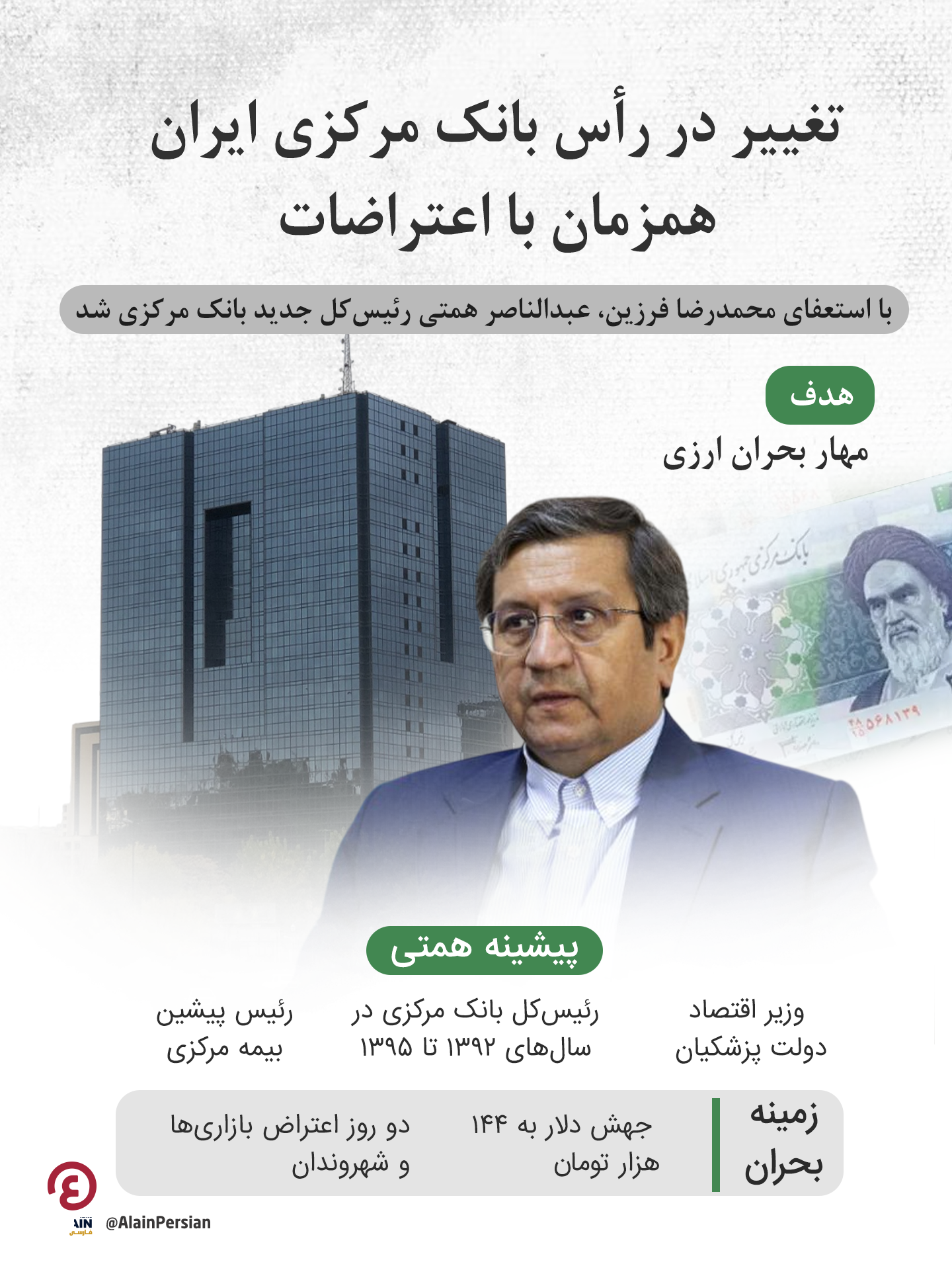 استعفای رئیسکل بانک مرکزی ایران همزمان با اعتراضات: همتی جانشین فرزین میشود