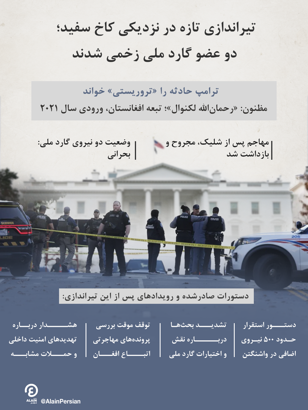 این حادثه که دونالد ترامپ آن را «تروریستی» توصیف کرد، زمانی رخ داد که دو نیروی گارد ملی در محدوده عملیاتی خود هدف گلوله فردی مسلح قرار گرفتند. مقامات امنیتی اعلام کردند هر دو سرباز در وضعیت بحرانی هستند و فرد مهاجم نیز پس از تیراندازی، با شلیک نیروهای امنیتی مجروح و بازداشت شد.