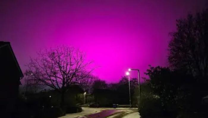این رویداد همزمان با بارش برف در منطقه وست میدلندز در مرکز انگلستان رخ داد؛ زمانی که مردم ناگهان متوجه شدند آسمان شب با هالهای صورتیرنگ روشن شده است.
