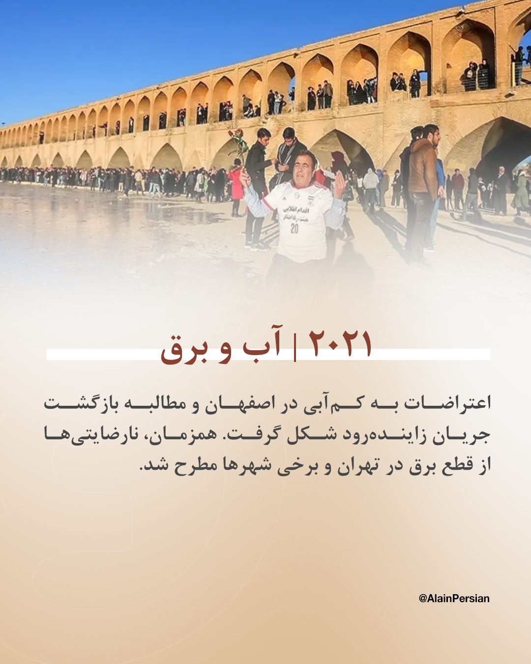 سالهای ۱۳۹۷ و ۱۴۰۰ شاهد اعتراضات مرتبط با بحران آب بودند؛ از مناطق کشاورزی گرفته تا اصفهان و زایندهرود. در این میان، سوءمدیریت منابع و خشکسالی بهعنوان دلایل اصلی مطرح شد.