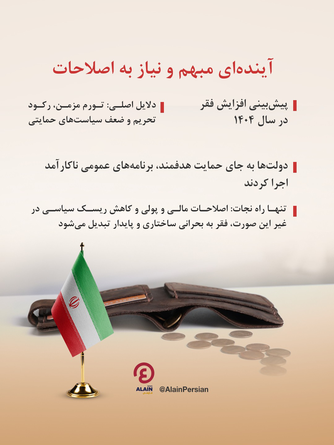 کارشناسان هشدار میدهند در صورت ادامه روند فعلی، فقر به پدیدهای ساختاری تبدیل خواهد شد. آنان بر ضرورت کنترل تورم، اصلاح سیاستهای مالی و ایجاد ثبات سیاسی و اقتصادی برای جلوگیری از گسترش بیشتر فقر تأکید میکنند.