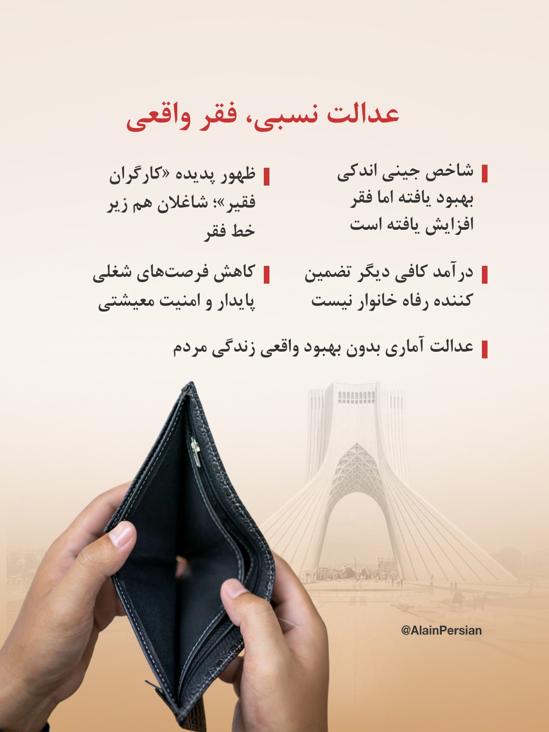 با وجود بهبود جزئی در شاخص نابرابری درآمدی (ضریب جینی)، این تغییر نتوانسته وضعیت معیشتی اقشار کمدرآمد را بهبود بخشد. به گفته تحلیلگران، پدیده «کارگران فقیر» در ایران گسترش یافته است؛ افرادی که با وجود اشتغال تماموقت، هنوز زیر خط فقر زندگی میکنند.