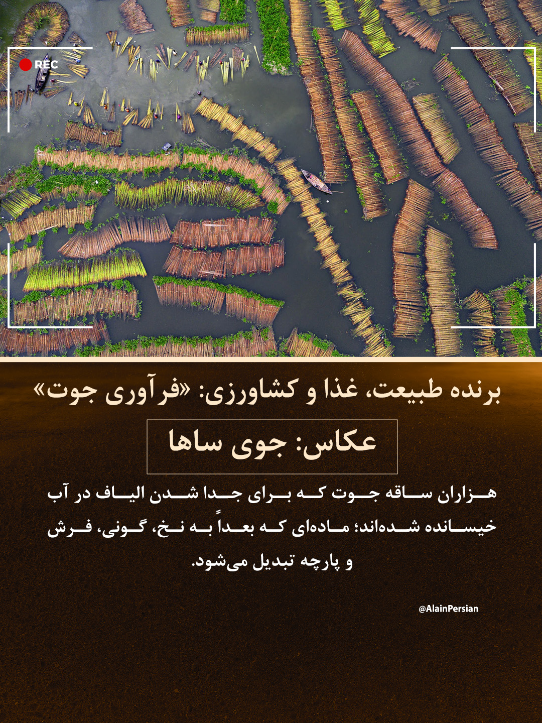 بخش طبیعت، غذا و کشاورزی نیز به اثر «فرآوری جوت» از جوی ساها اختصاص یافت؛ عکسی که خیساندن هزاران ساقه جوت برای استخراج الیاف را به تصویر میکشد.