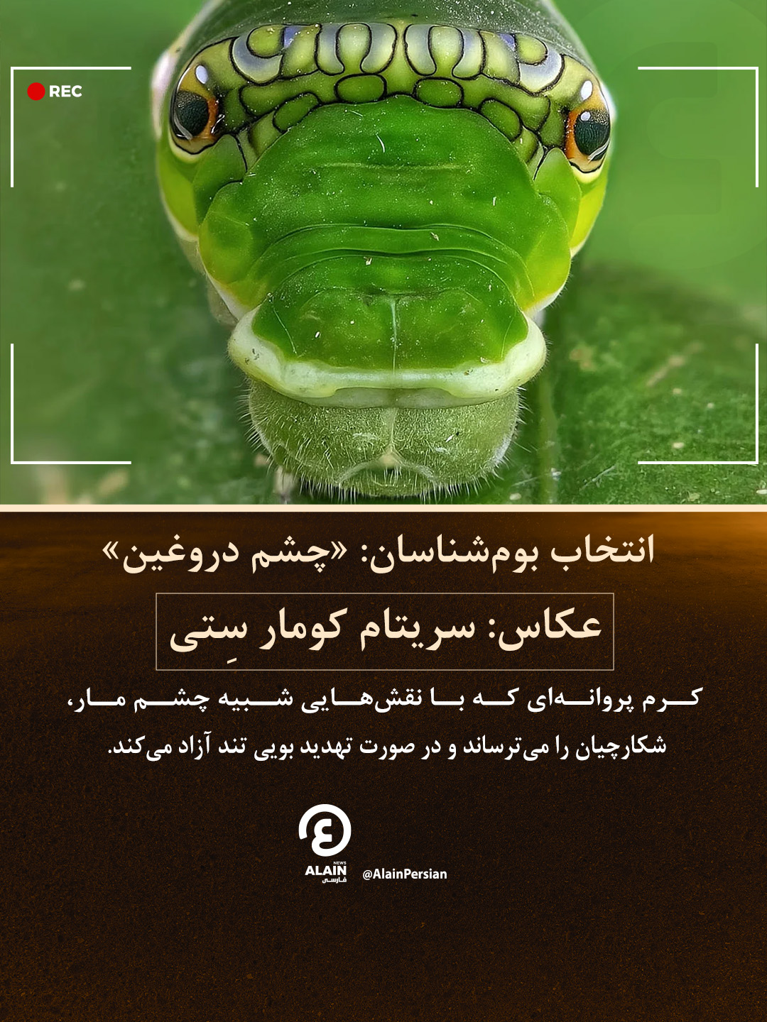همین عکاس همچنین عنوان «انتخاب بومشناسان» را برای اثر «چشم دروغین» دریافت کرد که کرم پروانهای با نقشهای شبهچشم مار را نشان میدهد.