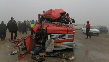 رسانههای ایران امروز پنجشنبه (۱۸ آذر) اعلام کردند که تصادف مینی بوس با تریلر در جنوب تهران ۱۲ مصدوم برجا گذاشت.