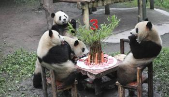 ویدئو | جشن تولد دیدنی پانداهای باغ وحش «شن شوپینگ» چین